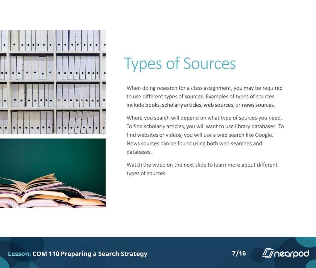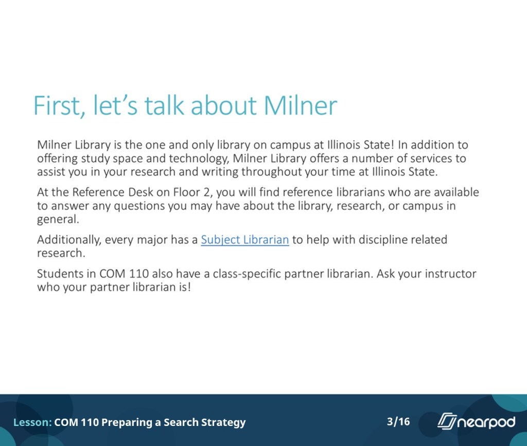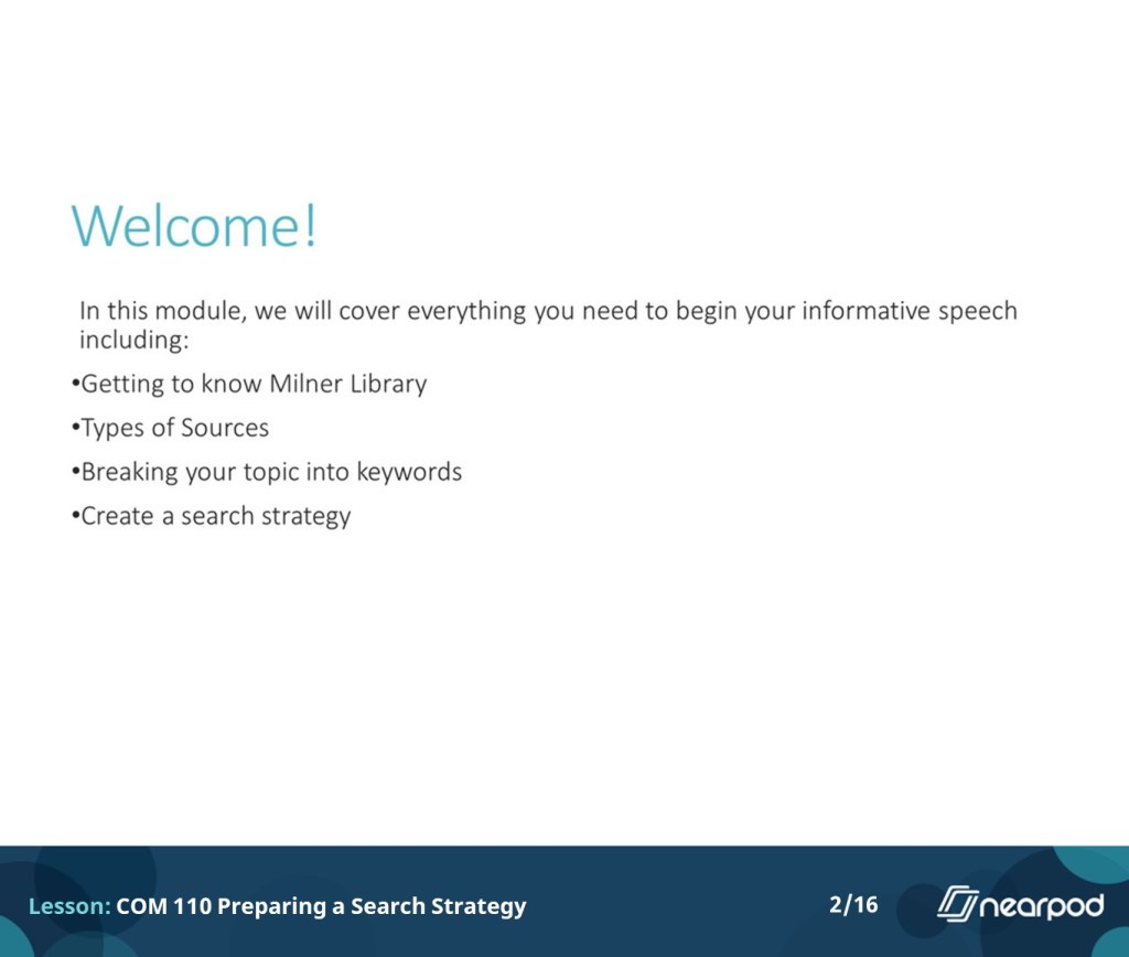 The slides below are a downloaded version of a hybrid style tutorial I created using Nearpod. Nearpod is similar to e-learning authoring softwares such as Articulate Rise and Adobe Captivate, and allows users to create interactive tutorials. The tutorial here includes several elements such as videos, quizzes, and discussions. The tutorial can be used asynchronously by students on their own time, or broadcast live by the instructor for a lesson that feels more like an interactive lecture.
